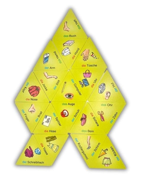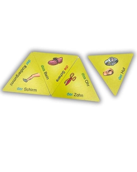 Lernspiel für 1. u. 2. Klasse, Wort-Bild-Zuordnung mit Artikel-Markierung in drei Farben,