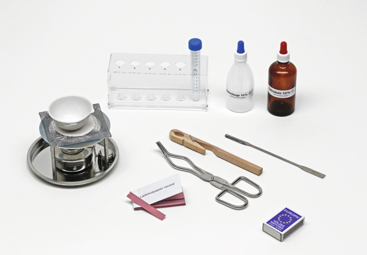 Der Chemie-Schülerversuchssatz ermöglicht die praxisnahe Weiterführung des handlungsorientierten Unterrichts, basierend auf den Konzepten der Schüler-Sets Chemie I und II. Entwickelt in Zusammenarbeit mit Prof. Dr. Andreas Kometz und der Arbeitsgruppe Didaktik der Chemie der Friedrich-Alexander-Universität Erlangen-Nürnberg, deckt der Satz den Themenbereich Säuren, Laugen und Salze ab.