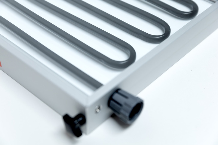 dass im Solarkollektor die Wärme der Sonnenenergie mittels Wasser aufgenommen wird.